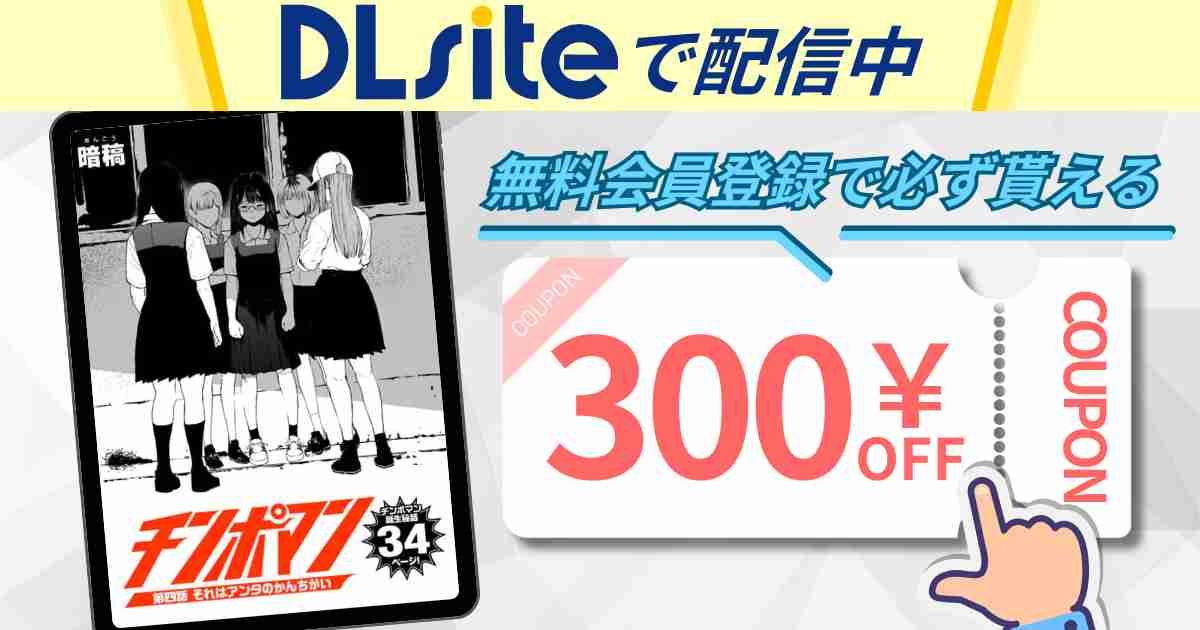 DLsiteなら初回クーポンで「チンポマン 第四話 それはアンタのかんちがい」を30円という破格の価格で購入できるため、実質的に無料に近い感覚で楽しめます。